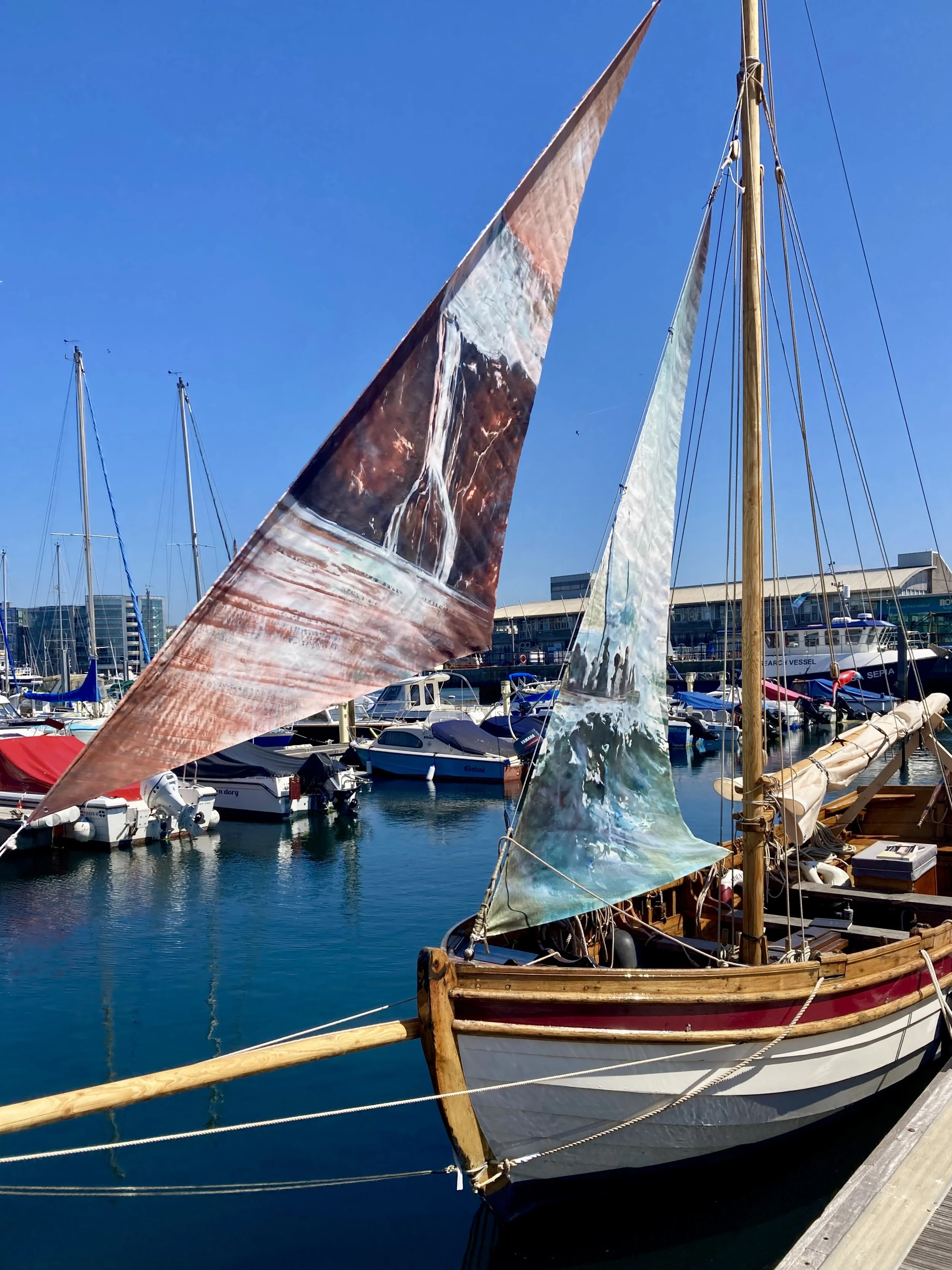 The two sails implied chapters of a book as the boat was exhibited at the National Oceanogaphic Centre, Southampton.